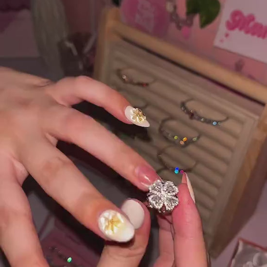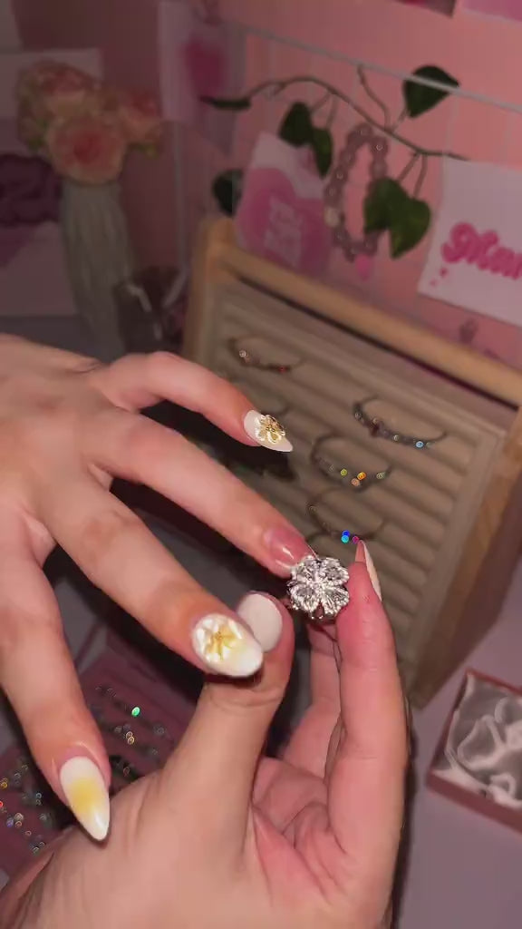 Heart Four Leaf Clover Rings for Women Adjustable Lucky Stainless Steel Ring